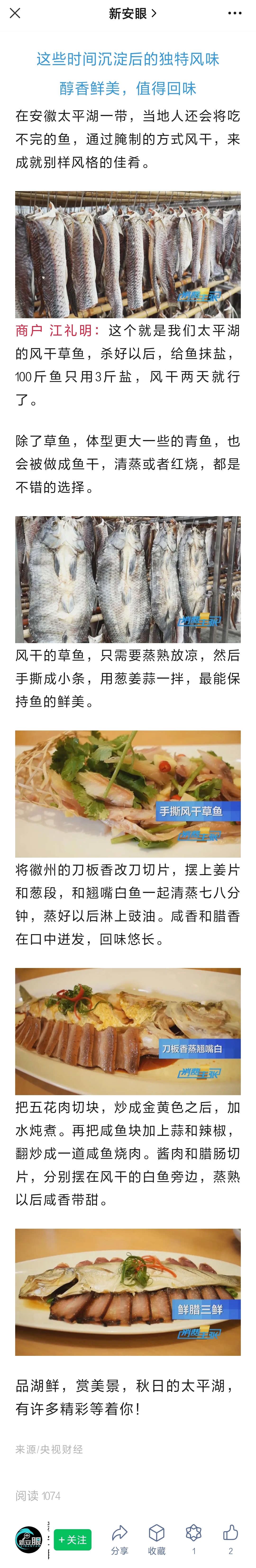 新安晚報【新安眼】微信公眾號,刊發(fā)CCTV2報道太平湖湖鮮