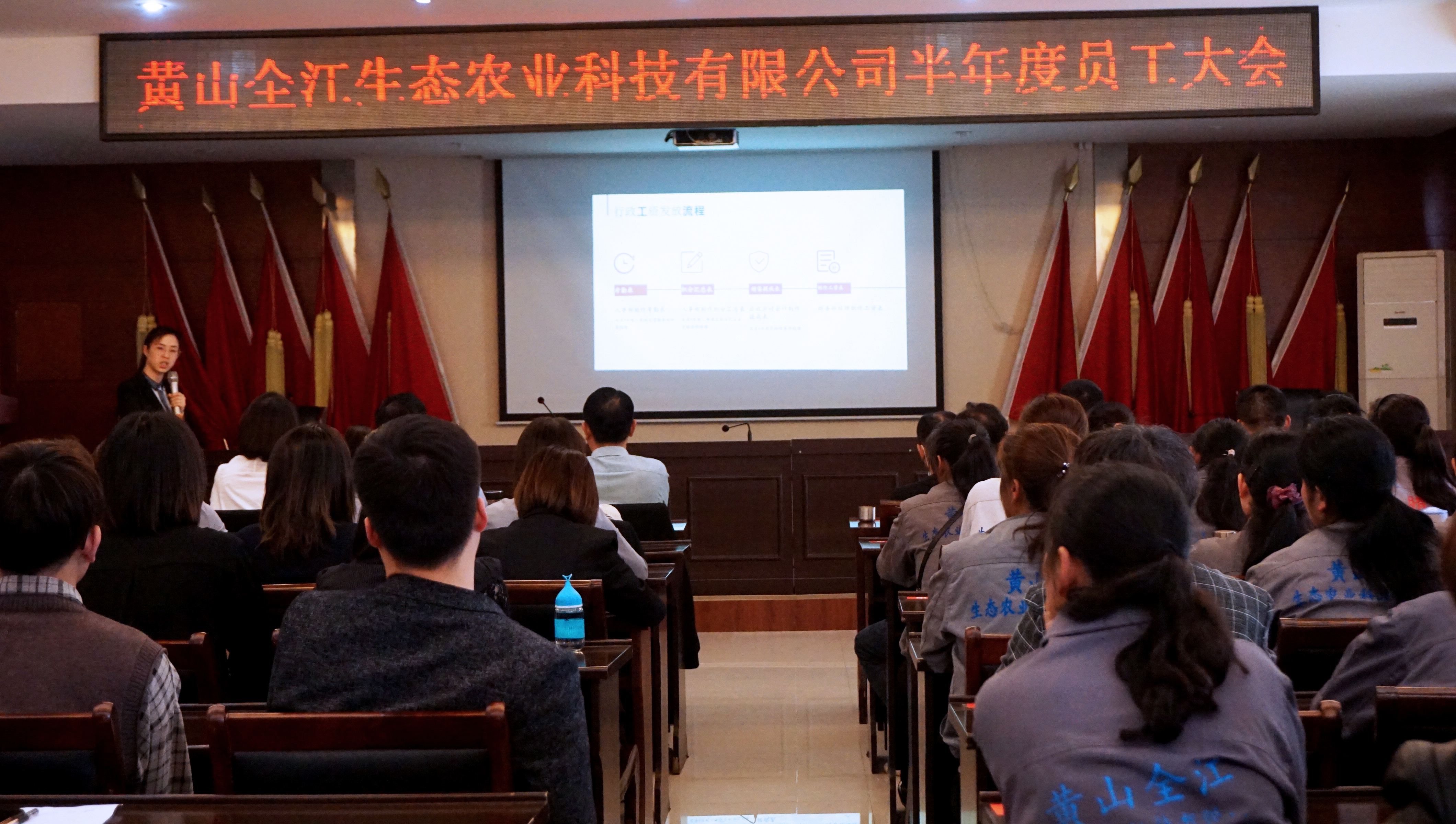 2021年4月28日下午,黃山全江所有領(lǐng)導(dǎo)及員工在熱烈、歡快的氣氛中成功召開(kāi)了半年度員工大會(huì),會(huì)議由總經(jīng)理助理李凌主持,本次大會(huì)目的是為了讓大家更好的了解公司企業(yè)文化、管理制度、財(cái)務(wù)制度以及食品、生產(chǎn)、消防安全知識(shí)、績(jī)效管理辦法等,接下來(lái),跟著小編一起來(lái)回顧下吧。
