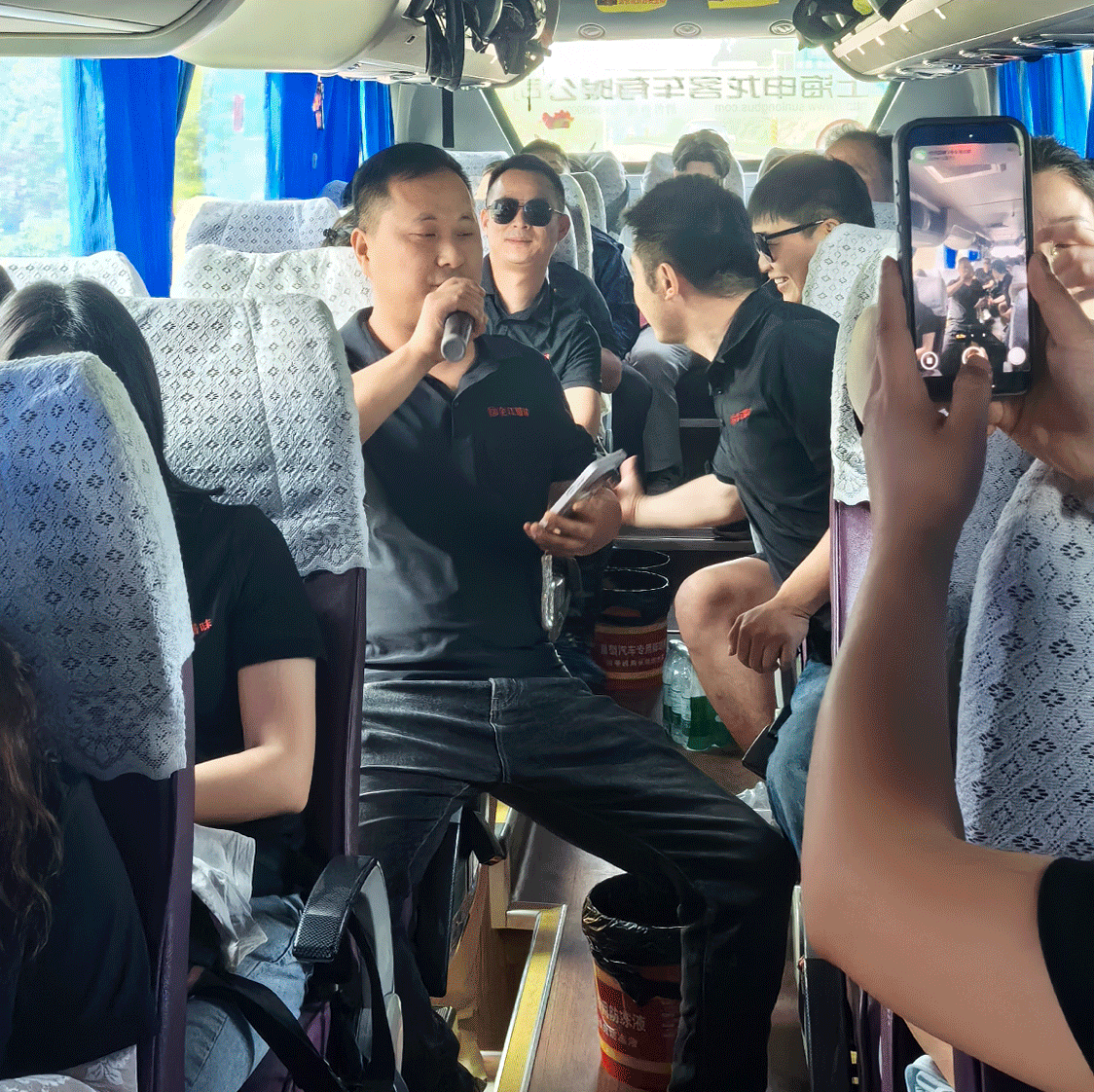 出發(fā)的大巴車上,熱鬧非凡,宛如一個移動的歡樂派對。